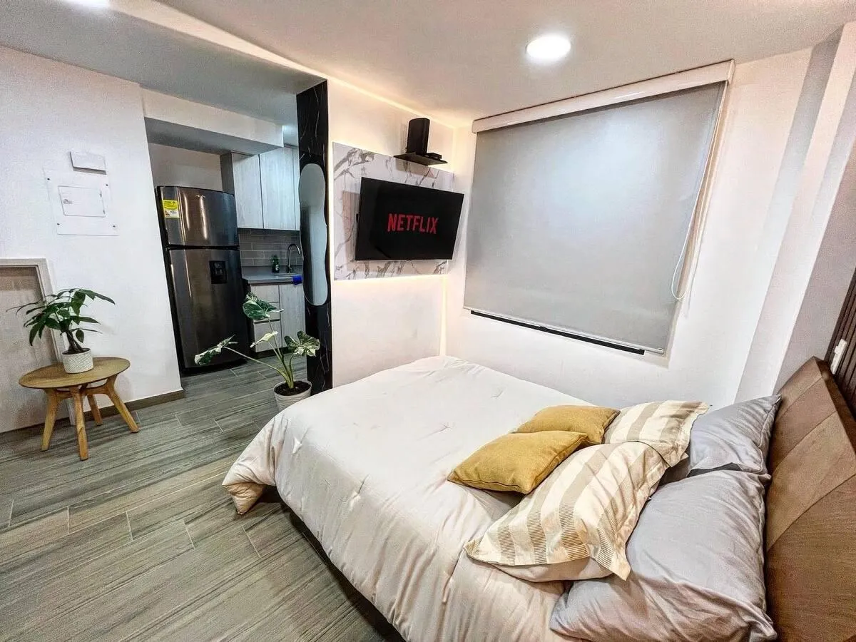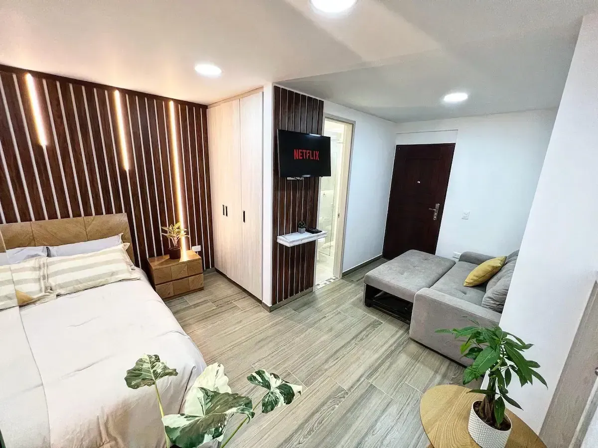 Disfruta de una experiencia con estilo en este alojamiento céntrico con fácil acceso a todo lo que ofrece la ciudad, Tendrás disponible un hermoso jacuzzi compartido en el primer piso del edificio para que pases veladas inolvidables y un apartamento totalmente amoblado para que pases una estancia cómoda y placentera en la ciudad de la eterna primavera. A solo 5 minutos caminando del gran centro comercial Arkadia en uno de los mejores sectores de la ciudad. Te esperamos!!