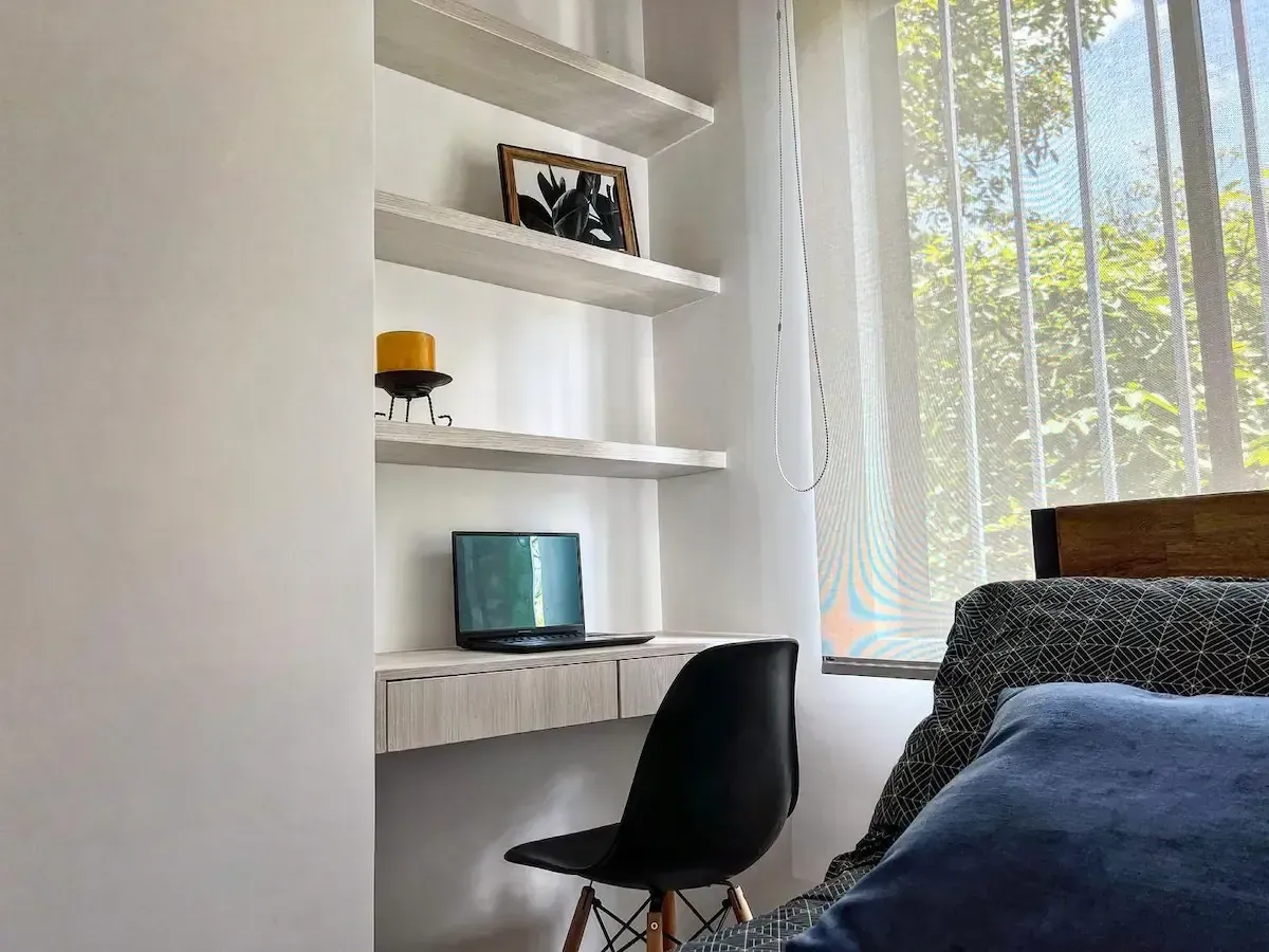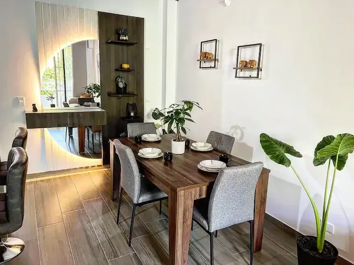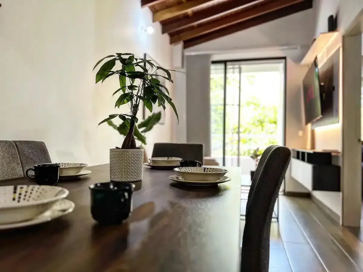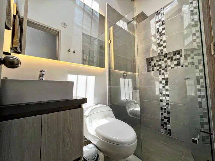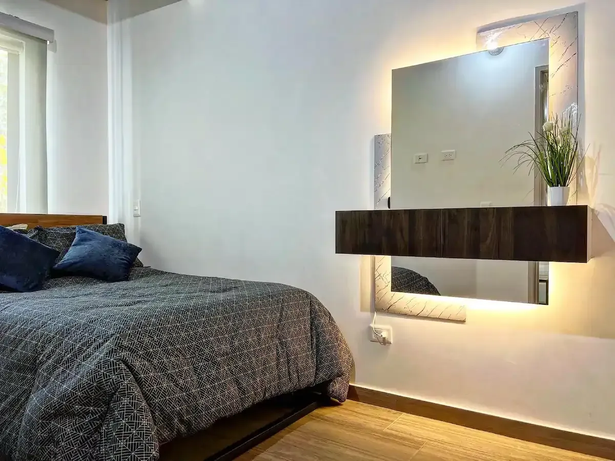 Tendrás 2 habitaciones grandes una de ellas con baño privado. otro baño para el área común una amplia cocina, comedor, sala con un sofá cama cómodo y un lindo balcón. cuentas con acceso compartido a un hermoso jacuzzi en el primer piso del edificio.