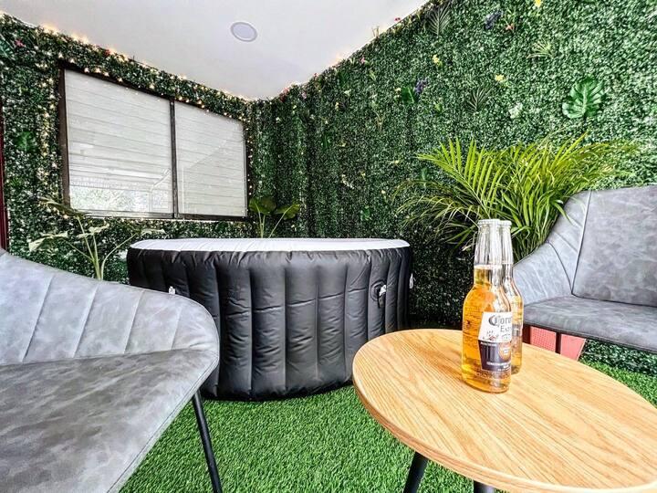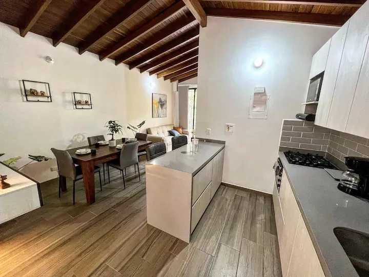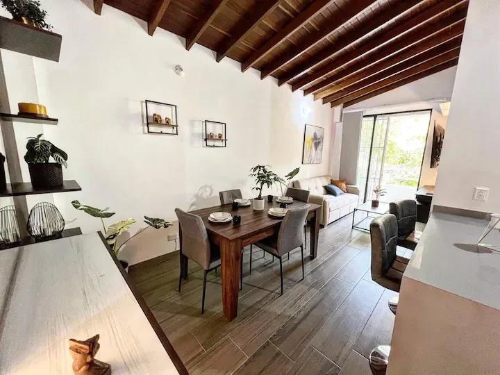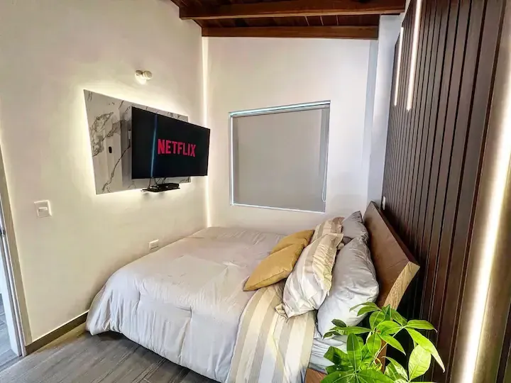 Disfruta de una experiencia con estilo en este alojamiento céntrico con fácil acceso a todo lo que ofrece la ciudad, Tendrás disponible un hermoso jacuzzi compartido en el primer piso del edificio para que pases veladas inolvidables y un apartamento de 2 habitaciones totalmente amoblado para que disfrutes una estancia cómoda y placentera en la ciudad de la eterna primavera. A solo 5 minutos caminando del gran centro comercial Arkadia en uno de los mejores sectores de la ciudad. Te esperamos!!.